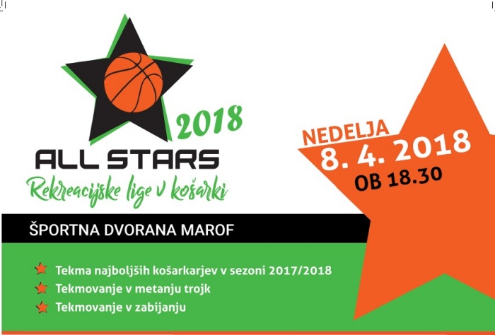 V soboto 14.4.2018 je v športni dvorani Marof potekala All stars tekma novomeške divje lige v košarki. Da na hitro razložim koncept: nabere se “najboljše igralce” vseh 3 rekreacijskih lig. Te igralce se nato “naključno” razvrsti v 2 ekipi, ki potem igrata med seboj in poskušata prikazati čim bolj “spektakularno” košarko.
